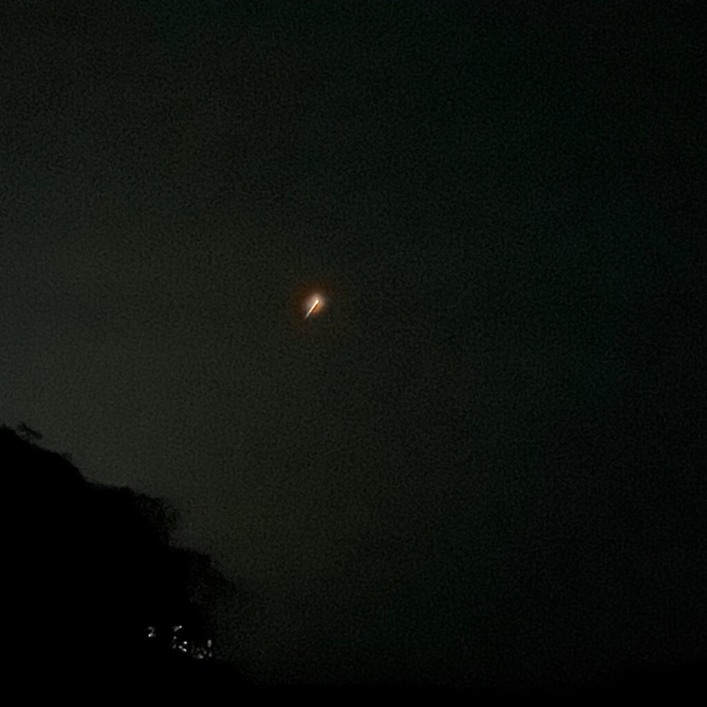 Below are additional photos taken of the launch. First image is as it takes off and appears above the skyglow from a condo building on the coast. Next pictures are taken as it goes downrange. The final 2 pictures show the rocket going down range and the booster landing on the drone ship.